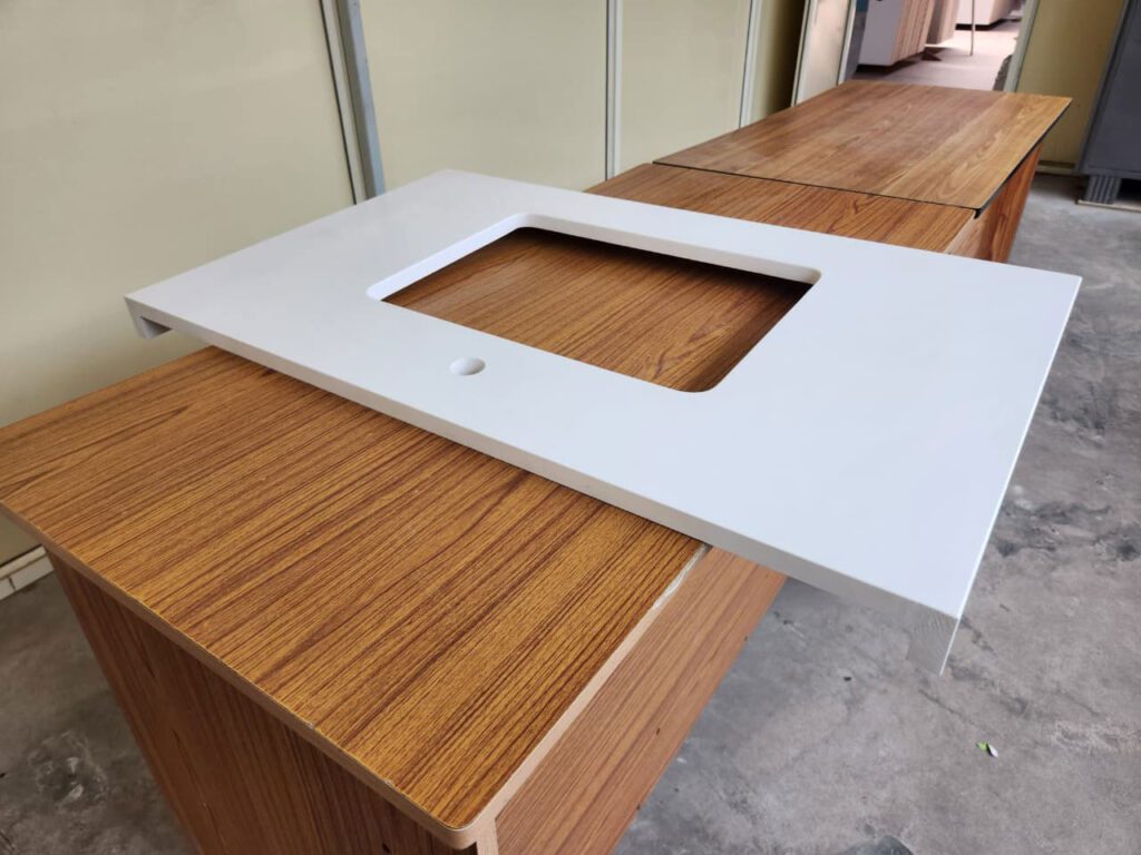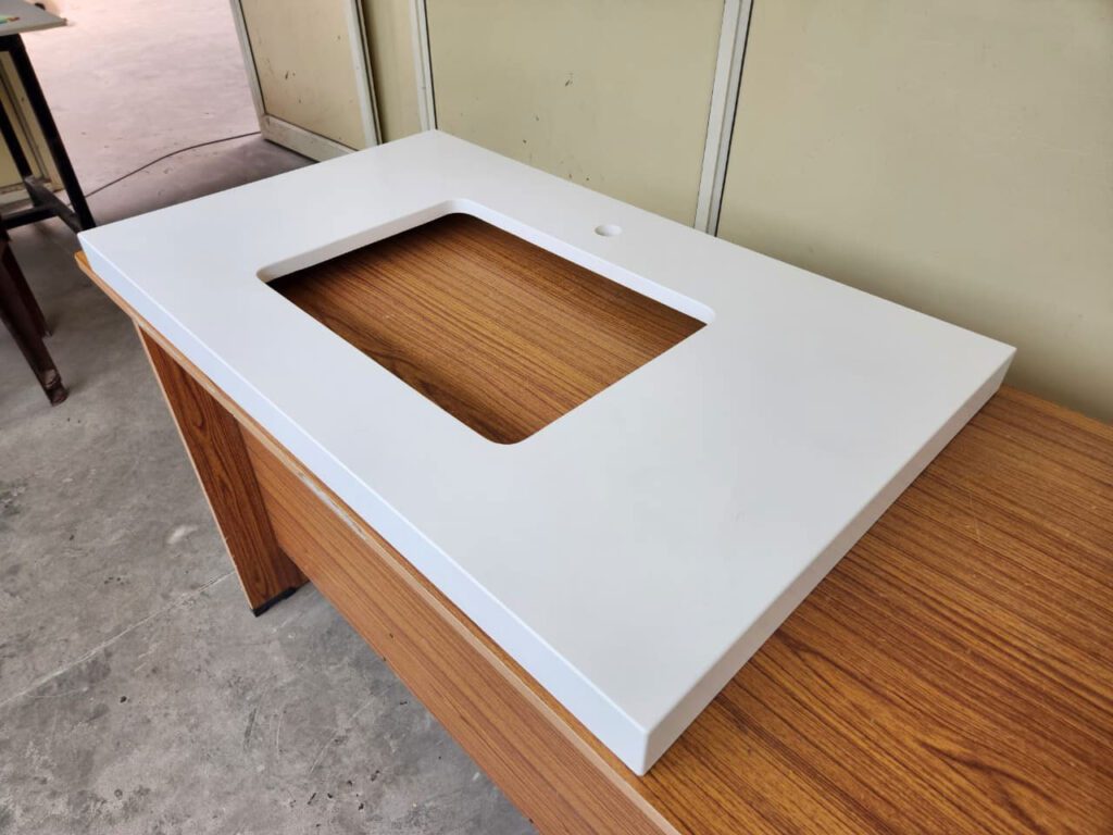 Our fabrication facility combines advanced CNC technology with skilled craftsmanship to produce precisely finished quartz components tailored to specific architectural and design requirements.