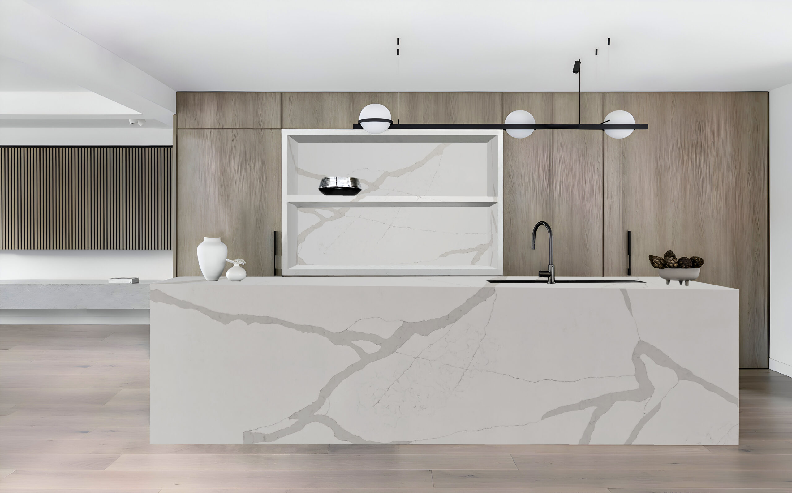 Calacutta Golden has a creamy white landscape, with rivers of warmth and gold winding through the slab.